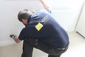 Moisture metres check the levels of moisture on surfaces. Our engineer will take several readings around your home where central heating pipes run around your property and around the boiler itself to check for areas with higher levels of moisture to pinpoint the source of the water leak. Higher levels of moisture present indicate there may be a central heating leak nearby. Sometimes as some materials are harder to test then others we may need to drill a small hole to take more accurate readings inside the surface. Although this approach isn't completely non-invasive, the damage caused is very minimal with this method.